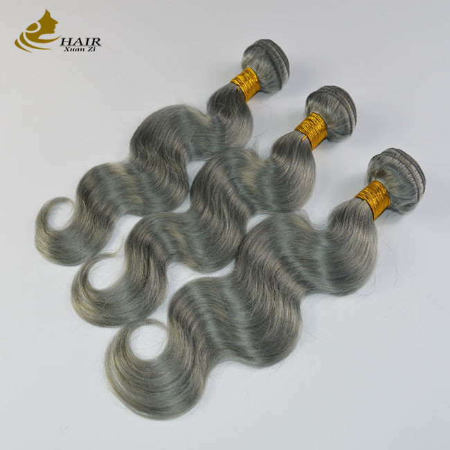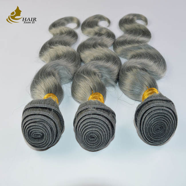 Ombre Platinum Silver Grey Color Hair Human Weave Bundles با بسته بندی