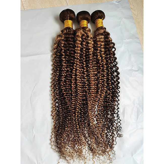بسته های موی کرل Kinky P4/27 Ombre Hair Extensions Hair Weft